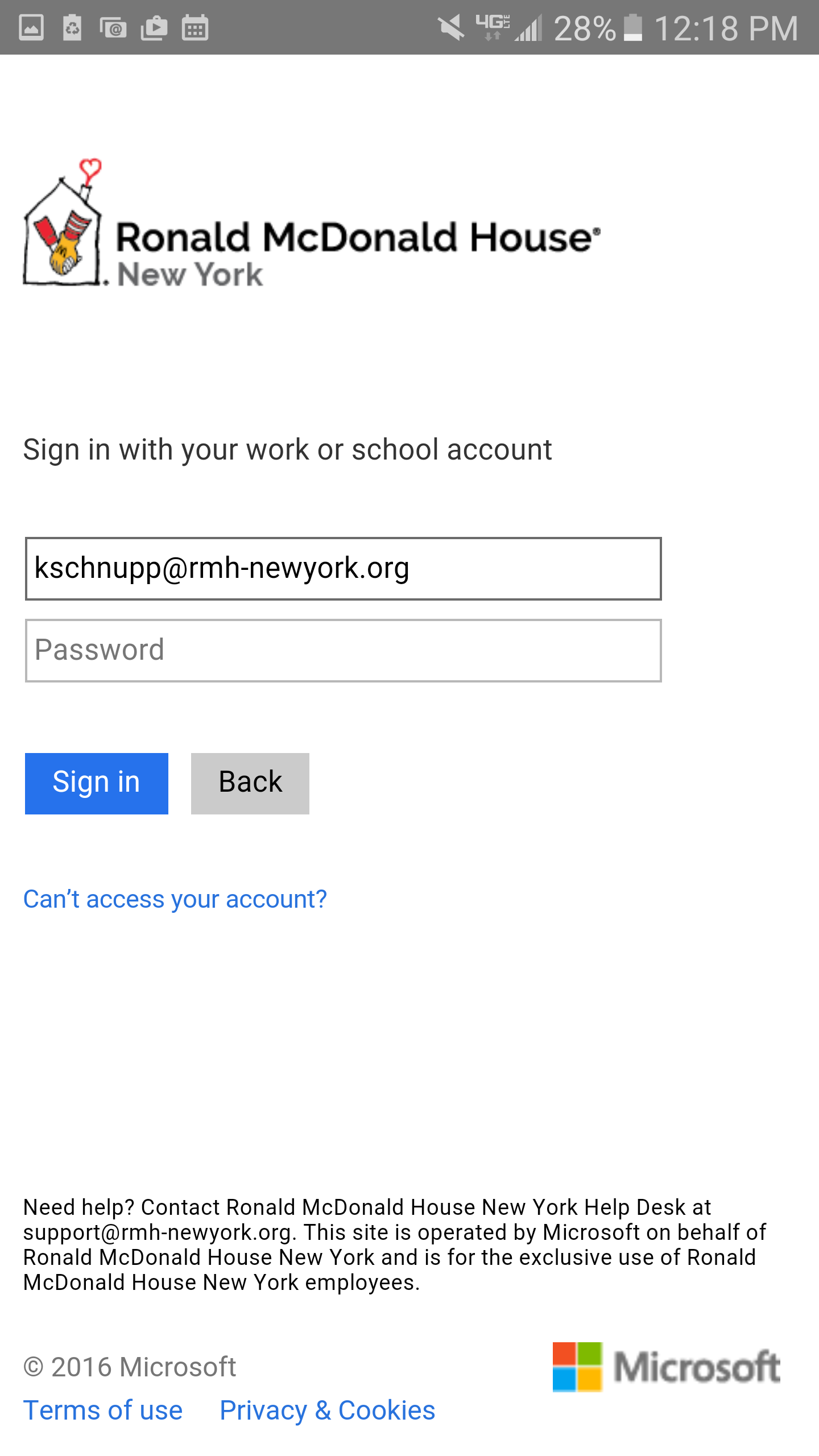 Step 4: Once logged in, the App will redirect to our sign-in portal. It will prompt you to sign in again. The sign-in portal should have our logo on it. Once logged in you should be all set and able to use Yammer on your phones.
