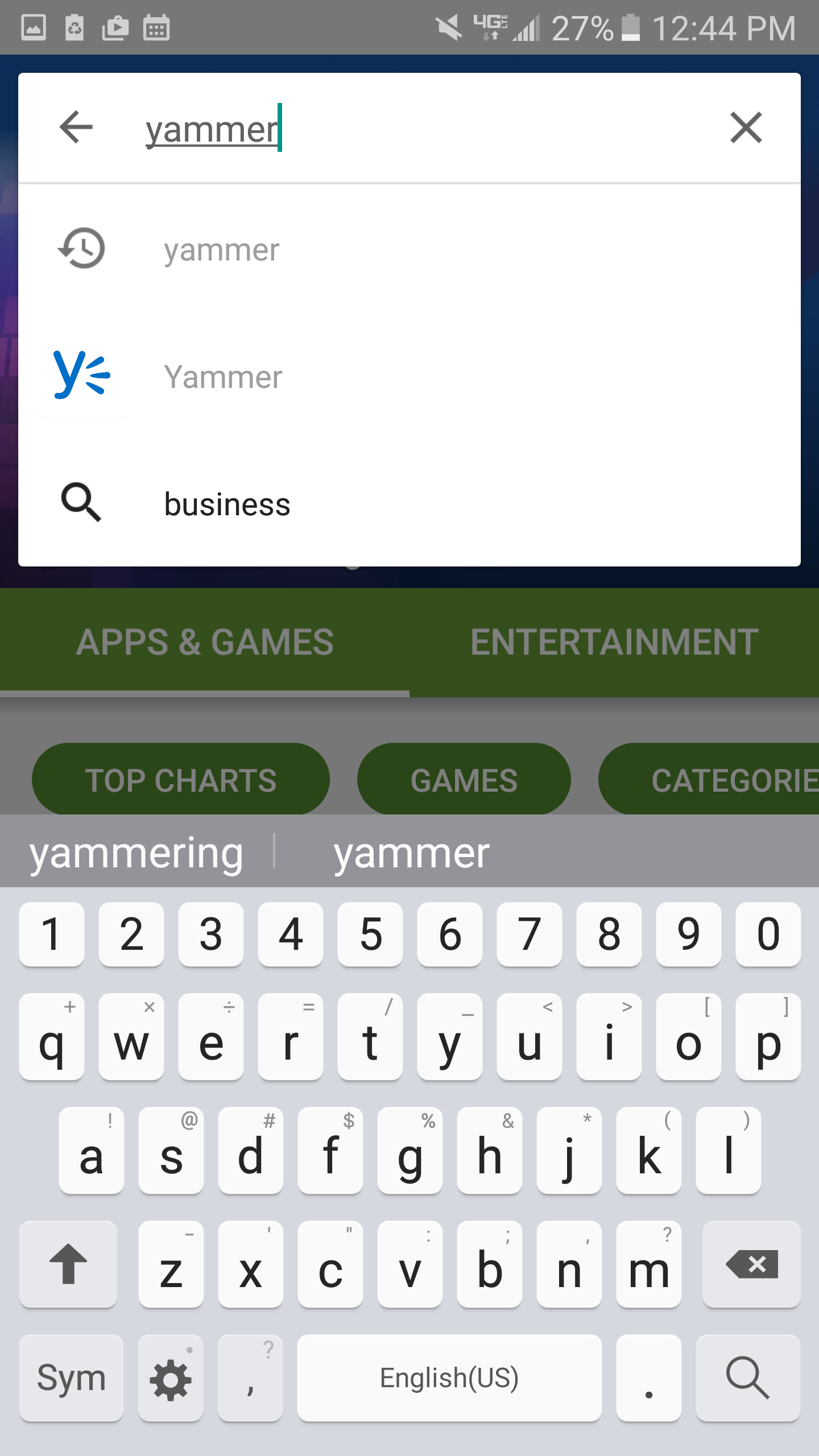 Step 1: Go to the Google Play Store and Type in Yammer. The App should show up and once clicked on, install the app.